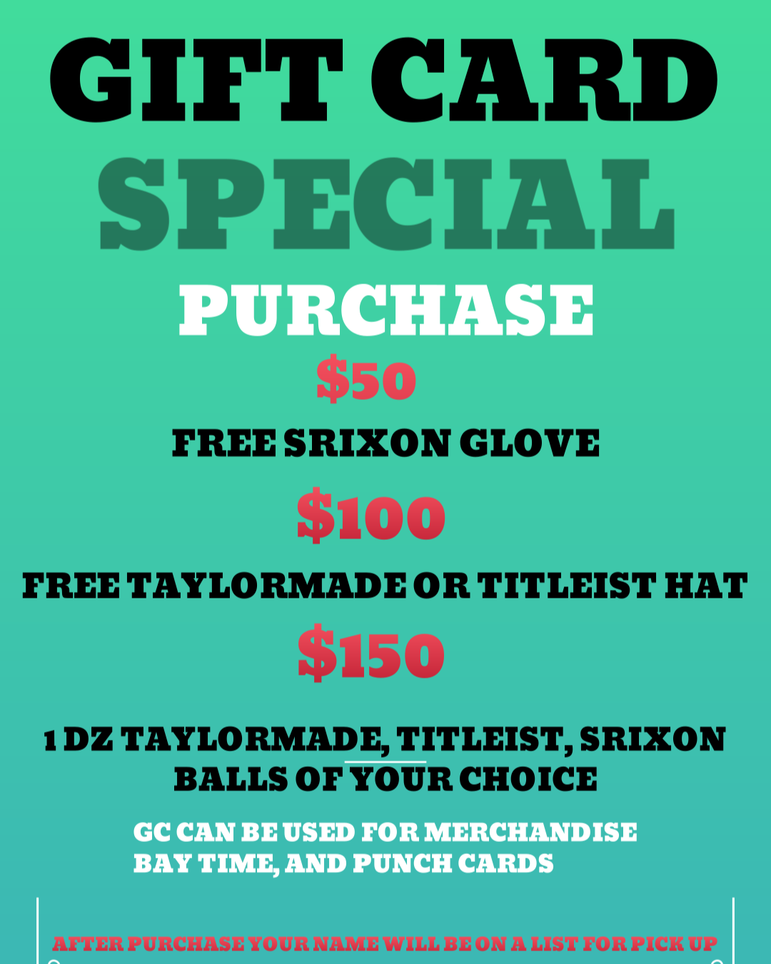 Gift card can be used for Merchandise, Bay time, or hourly packages!